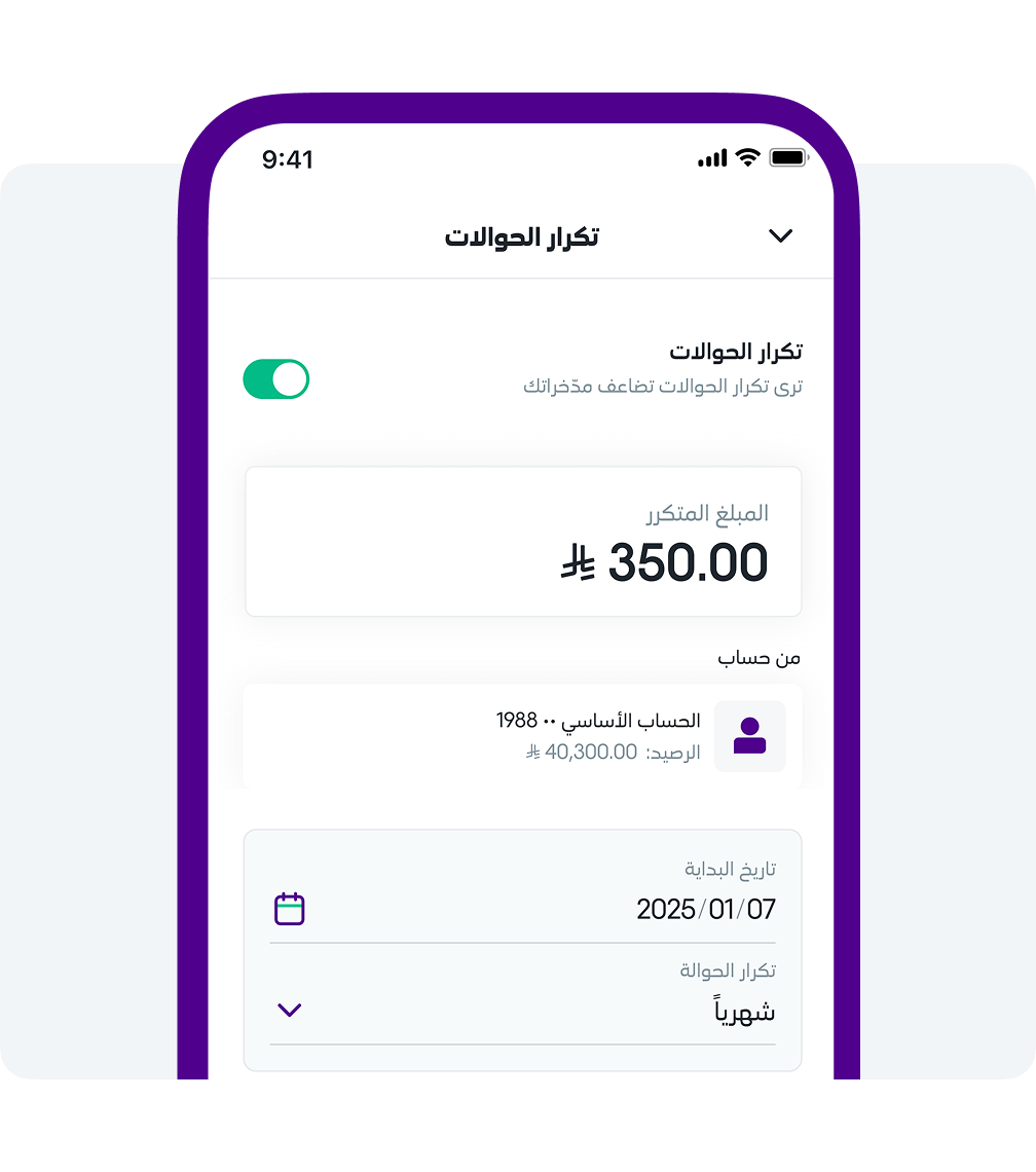 على عكس حسابك الحالي، يحقق لك حساب ادّخار سمارت أرباح على الأرصدة اللي تتجاوز 10,000 ريال سعودي، بحيث إنها تسمح تنمي أموالك مع مرور الوقت، وبمميزات تساعدك تدخر بكل سهولة.